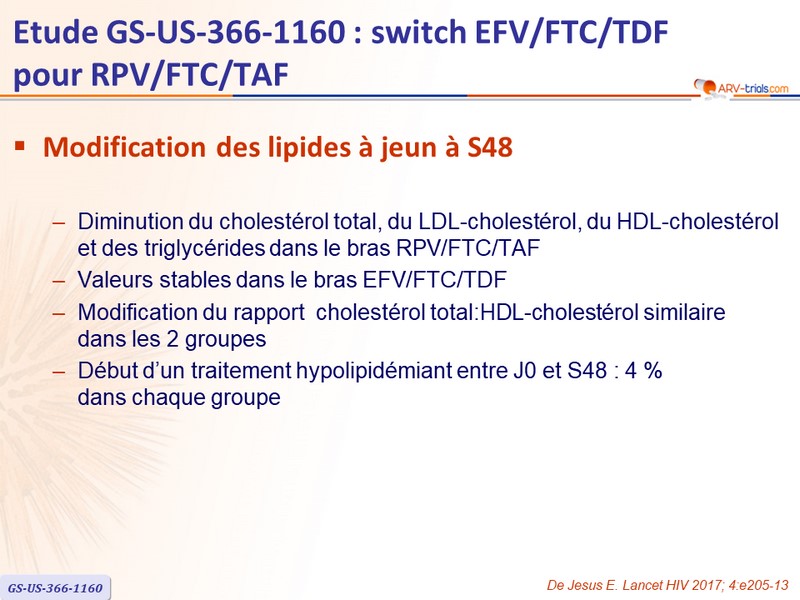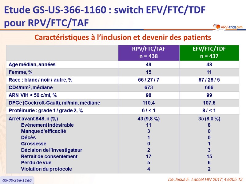 Etude GS-US-366-1160 : switch EFV/FTC/TDF