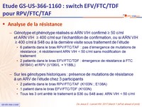 - 2 patients dans le bras EFV/FTC/TDF : émergence de résistance à FTC (M184V) et RPV (V106I/L + Y188L)