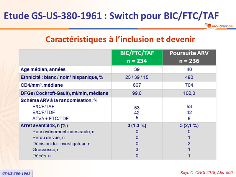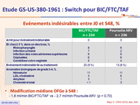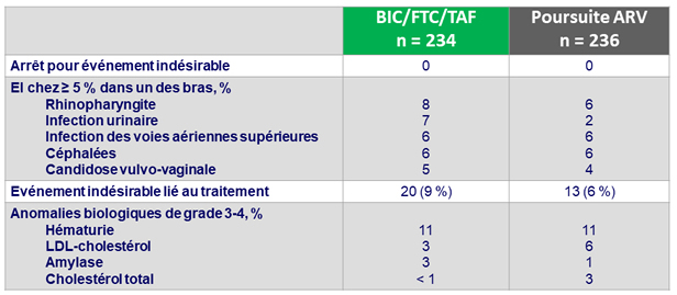 - BIC/FTC/TAF était bien toléré, avec aucun arrêt pour événement indésirable