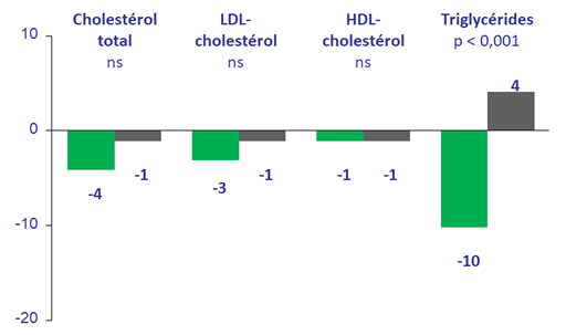 - Les modifications des paramètres lipidiques étaient comparables dans les 2 bras