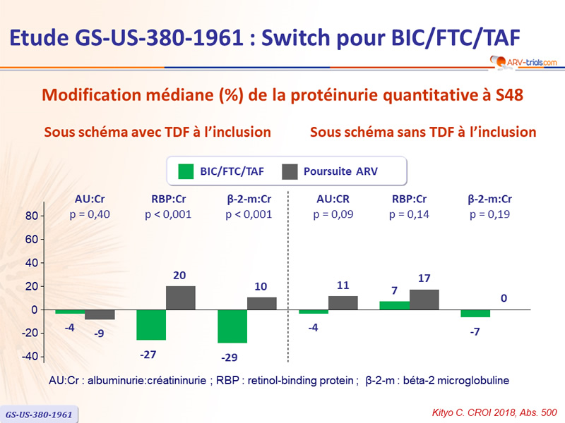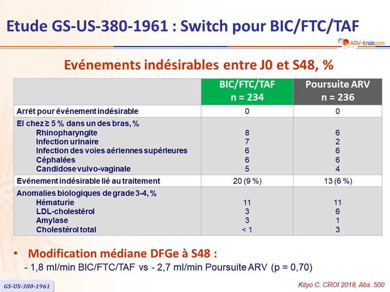 - - 1.8 mL/min BIC/FTC/TAF vs - 2,7 ml/min Poursuite ARV (p = 0,70)
